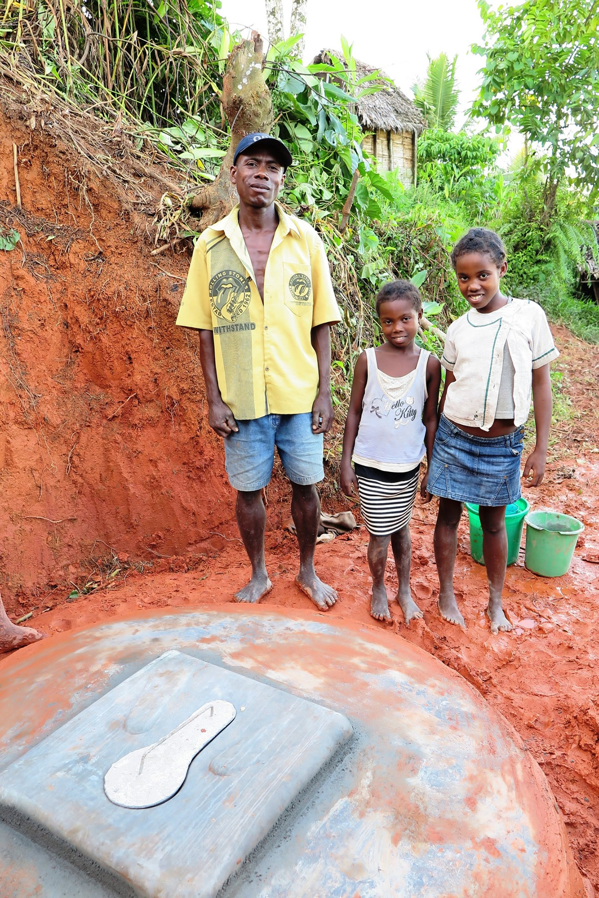 En ce qui concerne l'accès à un assainissement amélioré dans la ville de Maroantsetra, c'est la construction de latrines écologiques EcoSan (latrines sèches à double fosse avec séparation de l'urine) qui a été privilégiée. Elles présentent des avantages majeurs. Tout d'abord, elles protègent la nappe phréatique, un point important car la plupart des habitants de la ville se servent de l'eau des puits. Autre avantage, la possibilité de transformer les boues en matière moins pathogènes, ce qui réduit les risques de contamination dûs à l'absence de gestion des boues de vidange.