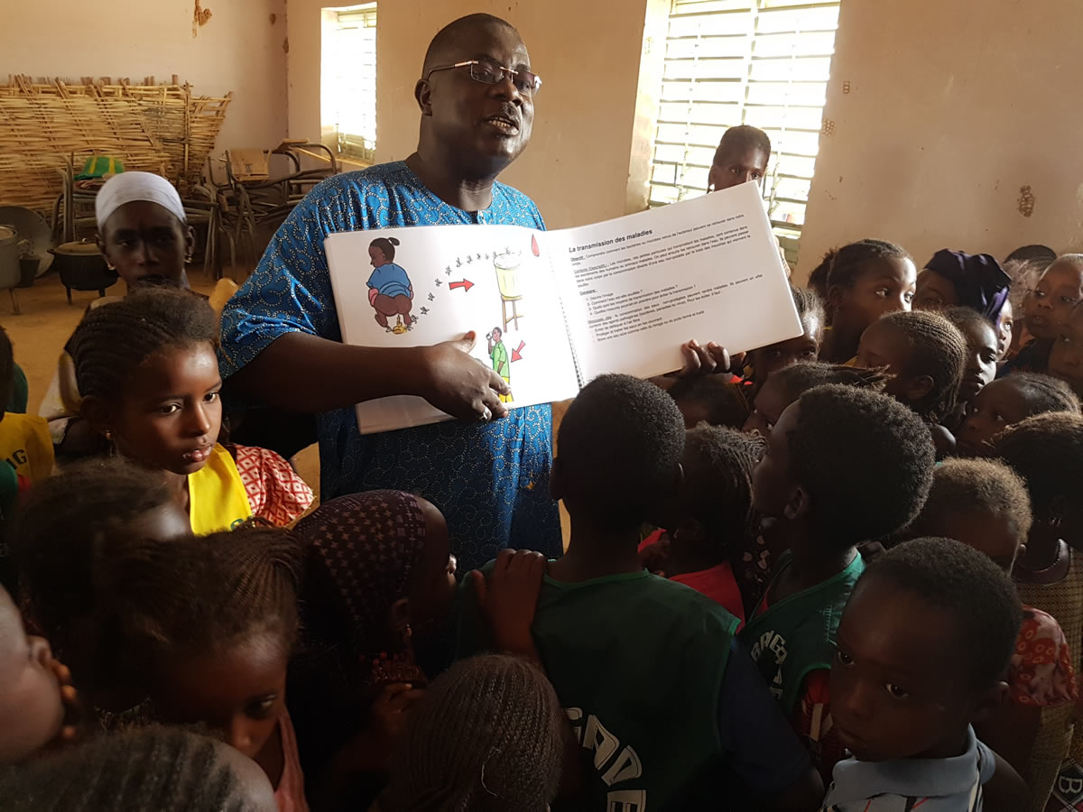 Concernant la composante assainissement, la construction de blocs sanitaires avec espaces séparés filles/garçons et accès handicapés sera réalisée dans la future école de Gassel et dans trois autres écoles. Concernant la dernière composante : les mesures sociales d'accompagnement sont prévues avec la mise en place d'un opérateur de gestion du service de l'eau, en coordination avec l'OFOR et l'ASUFOR pour assurer le suivi du service, la sensibilisation de la population à l'assainissement domestique et aux possibilités d'équipement en latrines est prévue ainsi que des mesures de formation et de sensibilisation des élèves, du corps enseignant et des parents d'élèves dans les écoles, à travers le programme dédié du Partenariat. Cette composante comprendra l'accompagnement de l'ASUFOR pour la gestion des nouveaux villages raccordés à Tiguéré Ciré, une sensibilisation de la population à l'assainissement domestique et aux possibilités d'équipement en latrines.
