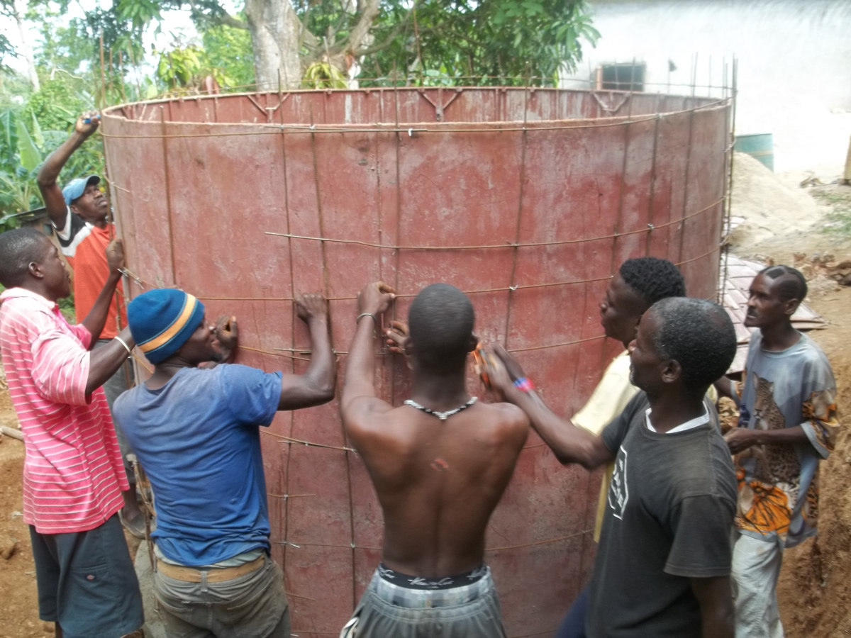 L'enquête a montré que l'habitude de minéraliser et de chlorer l'eau avant de la consommer était ancrée dans les pratiques des possesseurs de citerne. En effet, 98% des enquêtés déclarent chlorer l'eau après puisage. Il a en revanche été pointé que les usagers ne nettoient pas toujours correctement les citernes et que les débris végétaux sont fréquents, ce qui entraîne de la turbidité. Pour y remédier, des formations au nettoyage et aux réparations (cuve et gouttière) ont été dispensées auprès des propriétaires, et un système robuste et facile à entretenir pour limiter les débris a été conçu. Les tuyaux qui acheminent l'eau dans la citerne sont désormais déboîtables, pour permettre de dévier l'eau provenant du toit de la citerne si nécessaire, en lieu et place des habituels dispositifs de dérivation des premières pluies, souvent fragiles et inopérants. Au total, 77 citernes en béton et en roche maçonnée ont été réalisées, avec des volumes variant entre 6,5 et 11 m3.