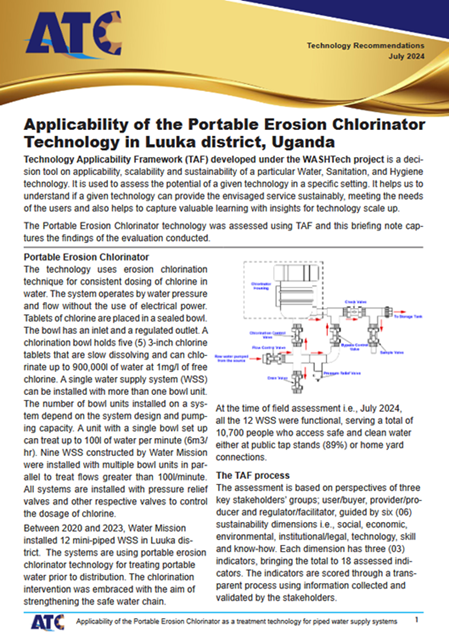 (Applicabilité de la technologie du chlorateur portable à érosion dans le district de Luuka, en Ouganda Évaluation TAF) rapport ; 4 pages | Jul 2024