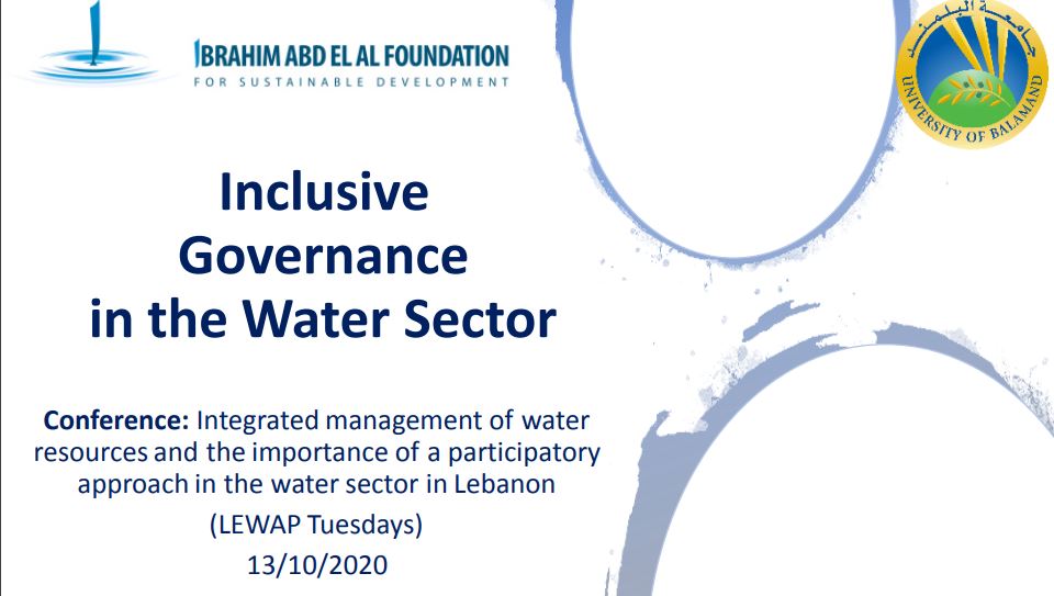 (Gouvernance inclusive dans le secteur de l'eau) diaporama powerpoint Aut. Marianne Saba ; 19 pages | Oct 2020