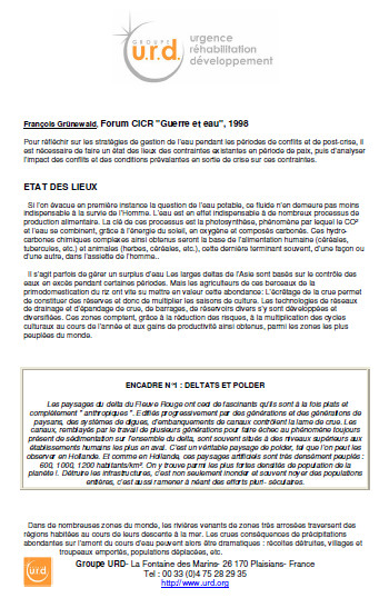 (Water, food and man) Forum CICR "Guerre et eau" rapport Aut. François Grünewald ; 5 pages | Jan 1998