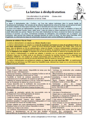 Une alternative à la pit-latrine - Application à l’Est du Tchad note ; 5 pages | Sep 2009