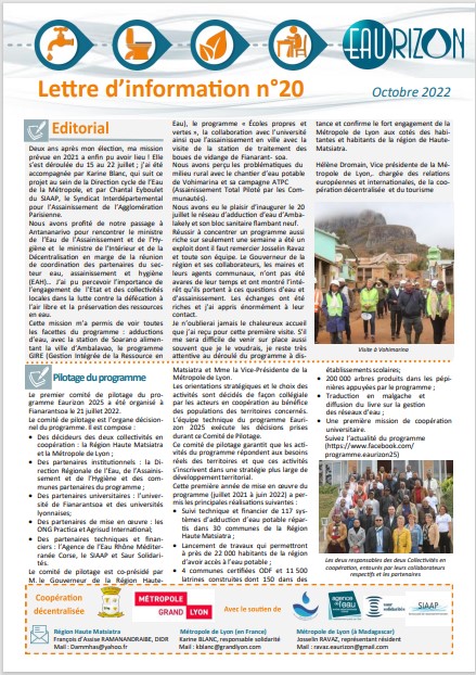 Eaurizon Mada 2020 - 3ème année du programme de coopération avec la région Haute Matsiatra