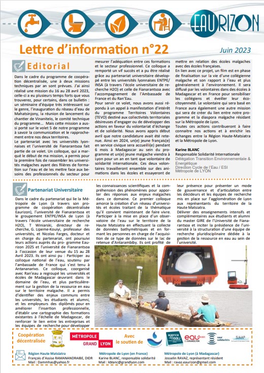 EAURIZON 2025 - 1ère année du programme de coopération avec la région Haute Matsiatra