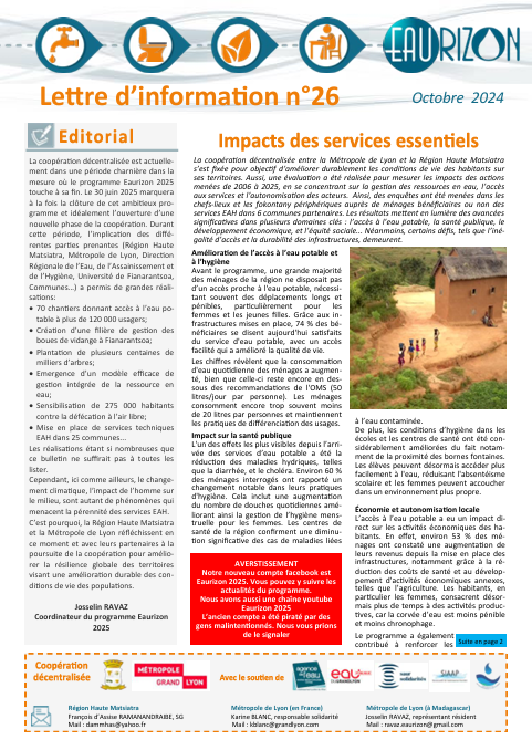 Lettre d'information n°26 Octobre 2024 du programme Eaurizon 2025