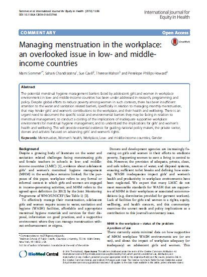 Managing menstruation in the workplace: an overlooked issue in low- and middle-income countries
