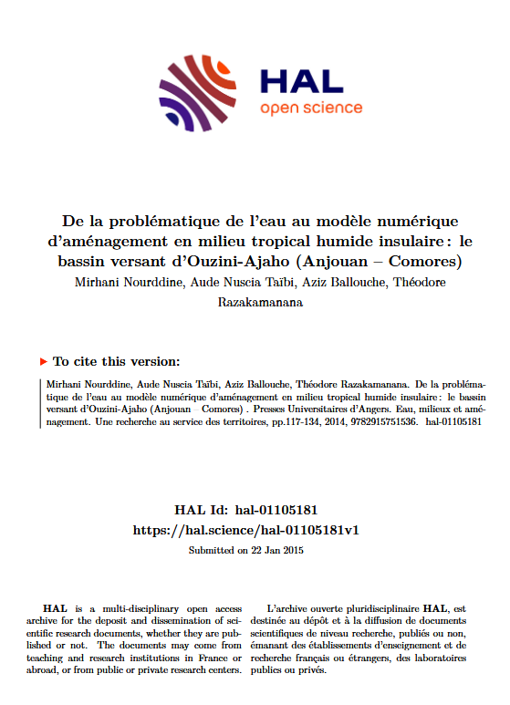 De la problématique de l'eau au modèle numérique d'aménagement en milieu tropical humide insulaire : le bassin versin d'Ouzini-Ajaho (Anjouan - Comores)