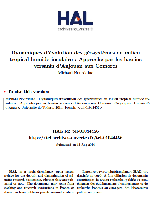 Dynamiques d'évolution des géosystèmes en milieu tropical humide insulaire : approche par les bassins versants d'Anjouan aux Comores