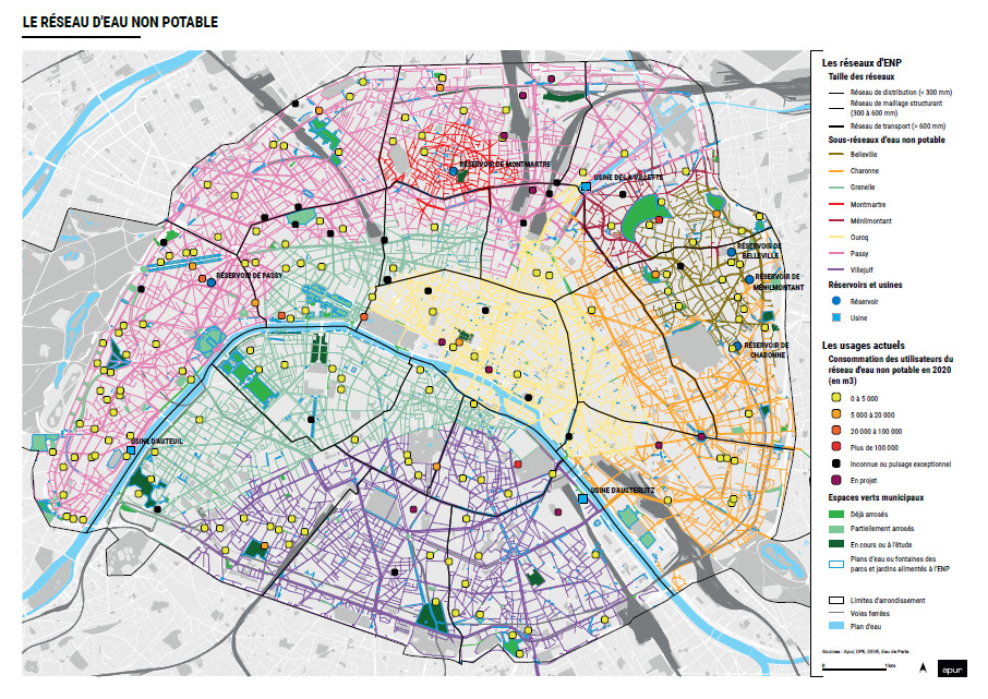 Carte du réseau d'eau non potable parisien