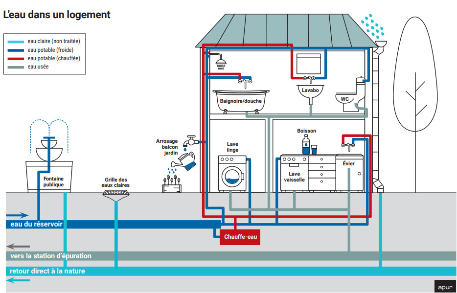 Schéma : l'eau dans un logement