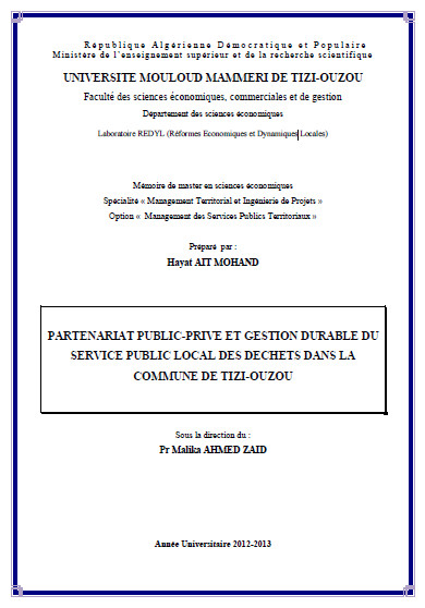 (Local public services management in Northern Africa countries : economic, social and cultural aspects) diaporama powerpoint Aut. Malika Ahmed Zaid-Chertouk ; 42 pages | Sep 2010