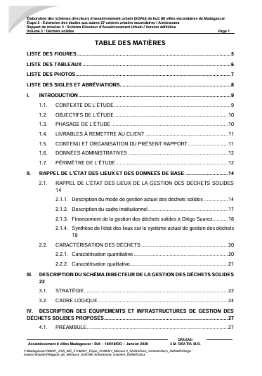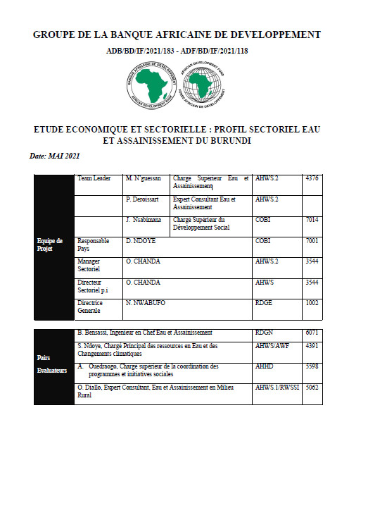 Rapport sur le profil sectoriel Eau et Assainissement de Madagascar
