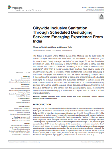 Citywide Inclusive Sanitation Through Scheduled Desludging Services: Emerging Experience From India