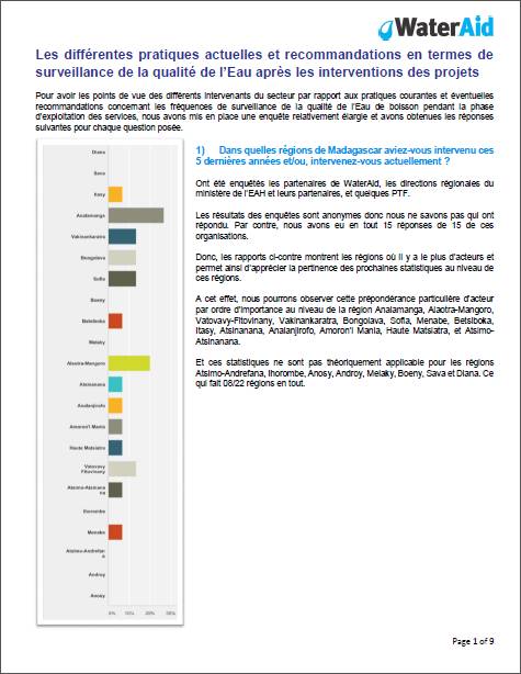 Partenaires institutionnels: Partenaires techniques et institutionnels : - ONGs locales : AMI, Manorintsoa, ECA, CNEAGR, VMEB, TSARAFARA, TAFAFI, FTL,ATOME, VONONA, Fivea , 5 tendances scouts, PFPH, IKTUS - ONGs internationales, programme international, agence de coopération ou Système des Nations Unies : FAA, UNICEF,JICA,BAD,USAID Institutions et autorités locales: MinEau, MinSan, MEN, MATD, Régions Analamanga, Menabe, Vakinankaratra et Atsinanana, les communes d'intervention - Universités et instituts : Polytechnique, ISPM, CNEAGR, Cranfield University, Columbia University, Université de Bordeaux, CRHT - Réseaux : Diorano- WASH et Ran’Eau - Consortium : WSUP - Secteur privé : Entreprise Mihaingo, Entreprise Mahavita - Organisations confessionnelles : Caritas et SAF