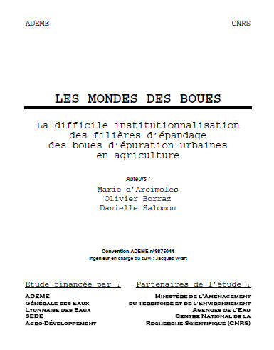 La difficile institutionnalisation des filières d'épandage des boues d'épuration urbaine en agriculture rapport Aut. Olivier Borraz & Marie d’Arcimoles & Danielle Salomon ; 159 pages | Jan 2001