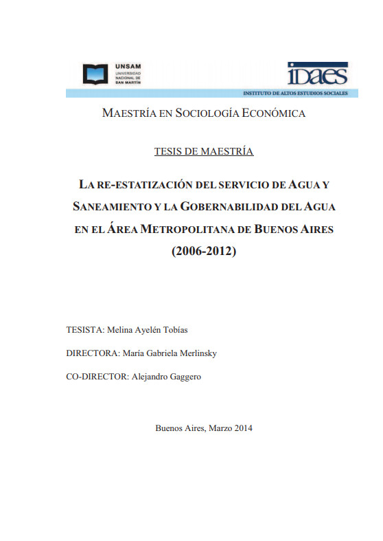 (Re-nationalization of water and sanitation services and water governability in the Buenos Aires Metropolitan Area (2006-2012))