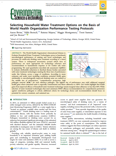 (Sélection des options de traitement des eaux ménagères sur la base des protocoles d'essai de performance de l'Organisation mondiale de la santé)