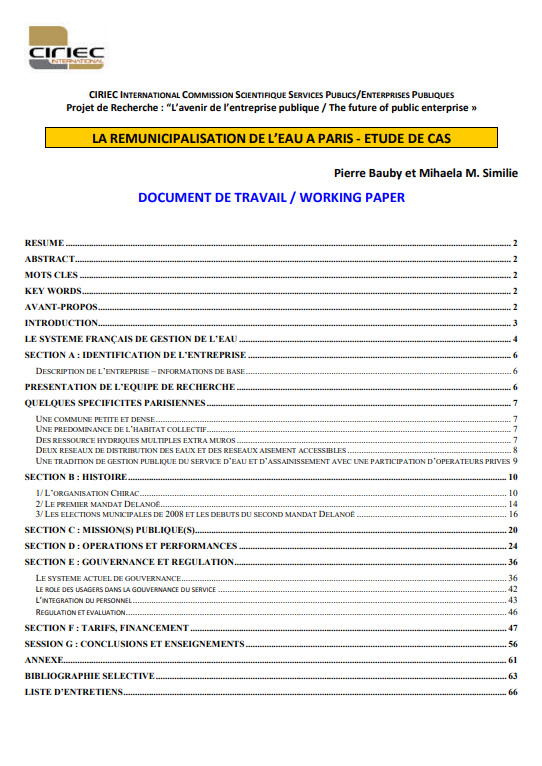 La remunicipalisation de l'eau à Paris - Etude de cas