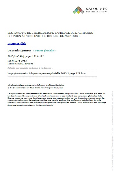 Les paysans de l'agriculture familiale de l'altiplano bolivien à l'épreuve des risques climatiques