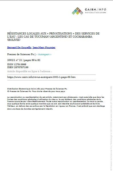 résistances locales aux « privatisations » des services de l'eau : les cas de tucuman (argentine) et cochabamba (Bolivie)