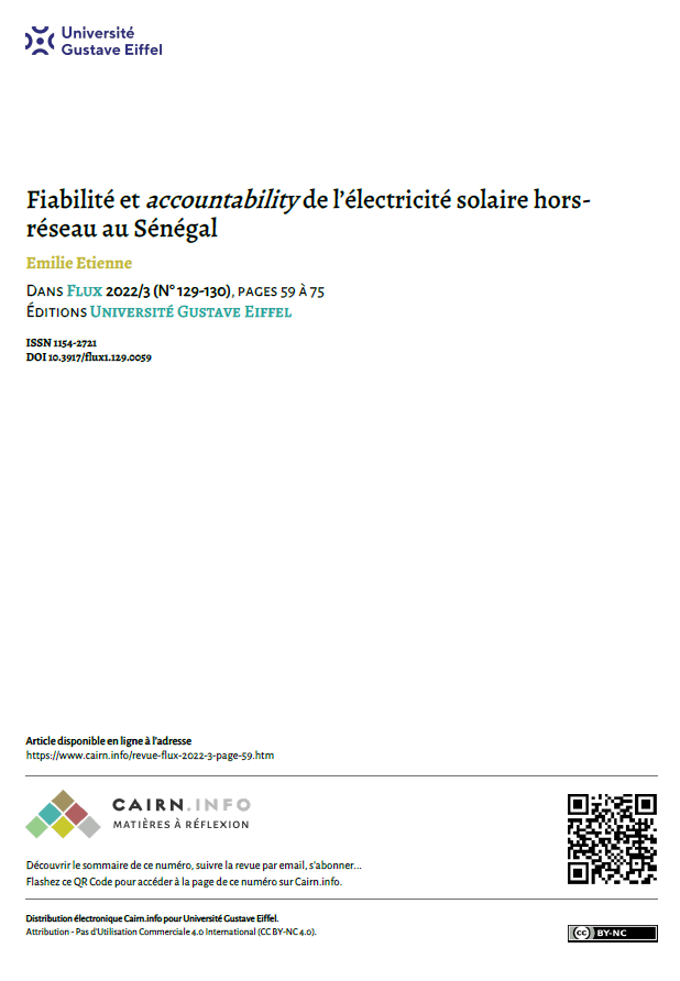 Fiabilité et accountability de l'électricité solaire horsréseau au Sénégal