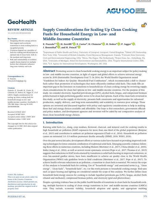 Supply Considerations for Scaling Up Clean Cooking Fuels for Household Energy in Low‐ and Middle‐Income Countries