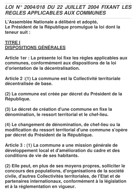 Loi n°2004/018 du 22 juillet 2004 fixant les règles applicables aux communes