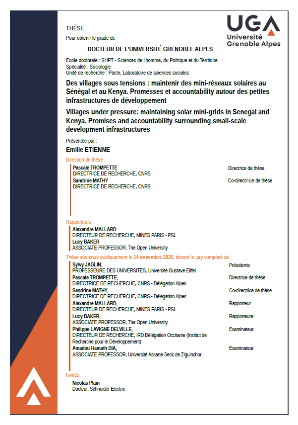 (Villages under pressure: maintaining solar mini-grids in Senegal and Kenya. Promises and accountability surrounding small-scale development infrastructures) thèse Aut. Emilie Etienne ; 528 pages | Dec 2025