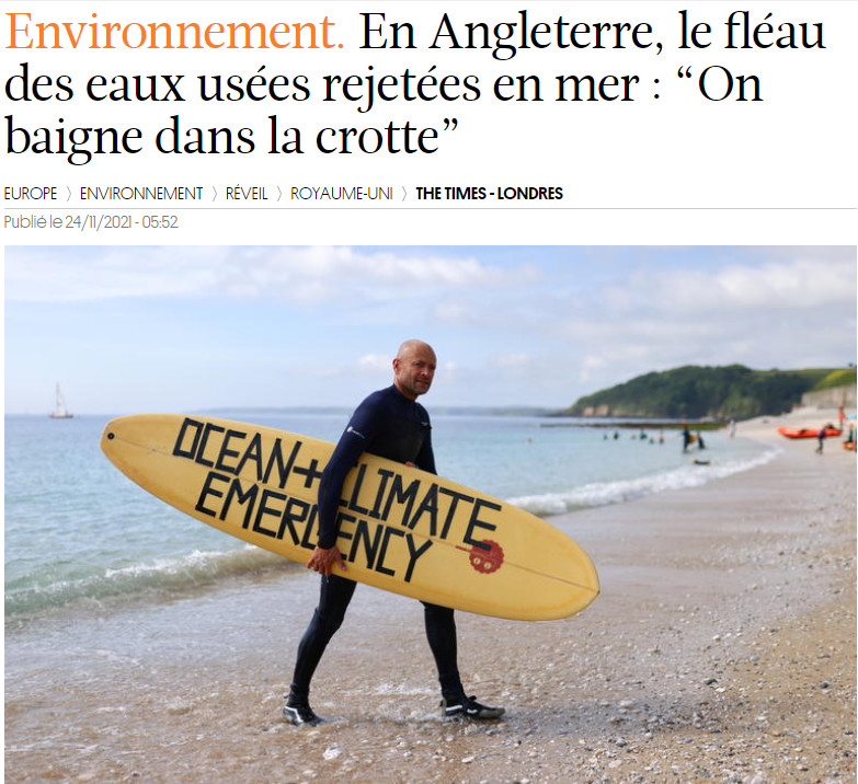 (How the man behind Surfers Against Sewage took on the (dirty) water brigade) article de presse Aut. Alice Thomson ; 5 pages | Nov 2021