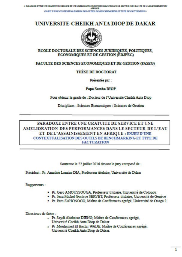 UCAD (Université Cheikh Anta Diop BP 5005 Dakar-Sénégal