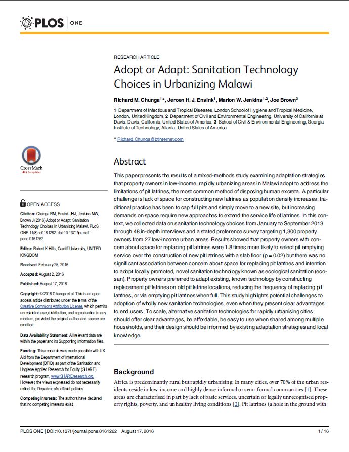 Adopt or Adapt: Sanitation Technology Choices in Urbanizing Malawi
