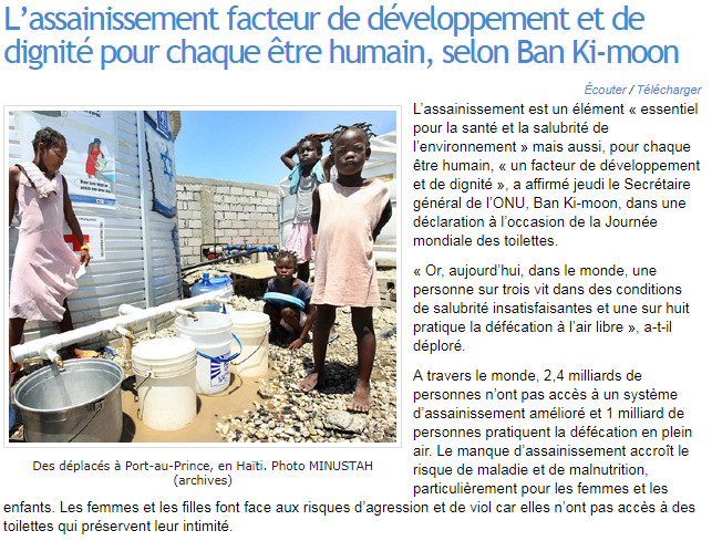 L'assainissement facteur de développement et de dignité pour chaque être humain, selon Ban Ki-moon
