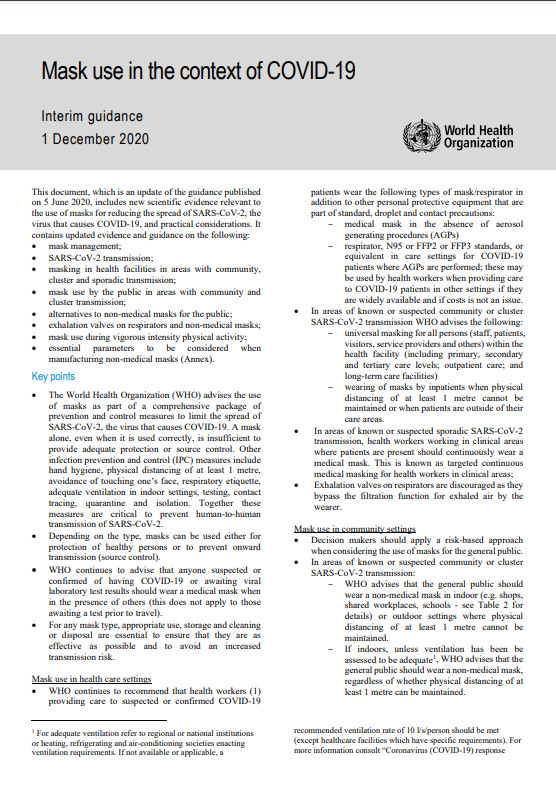 Mask use in the context of COVID-19 - Interim Guidance