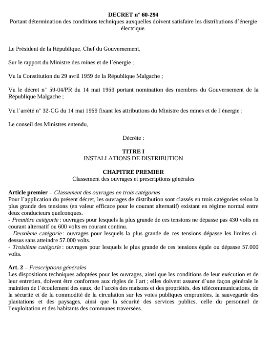 Décret n° 60-294 Portant détermination des conditions techniques auxquelles doivent satisfaire les distributions d'énergie électrique.